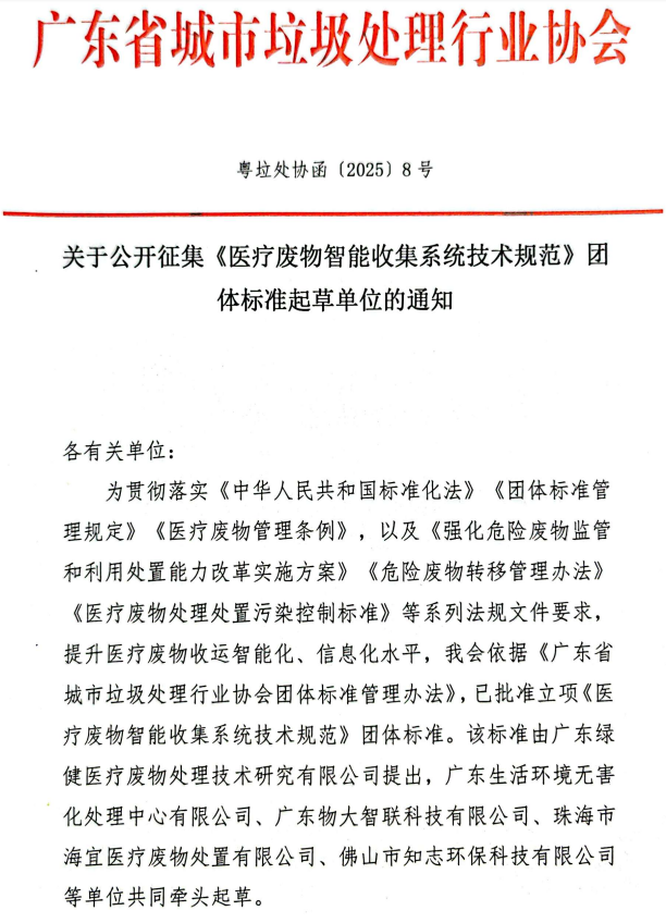 - 关于公开征集《医疗废物智能收集系统技术规范》团体标准起草单位的通知 [2025-12-23]